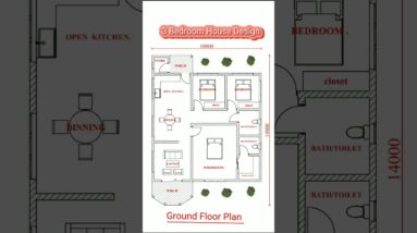 (14x10m) 3 bed room small home design ground plan